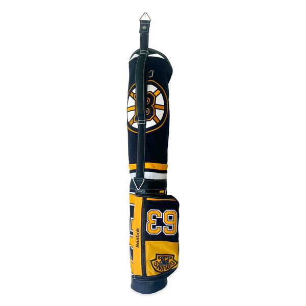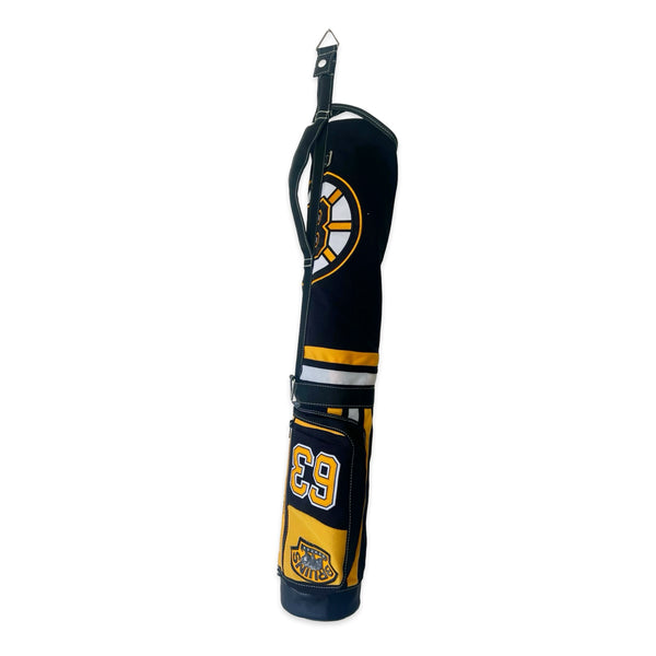 - 100% reclaimed jerseys and trimmed with genuine weathered black leather and black webbing. (includes matching canvas strap).