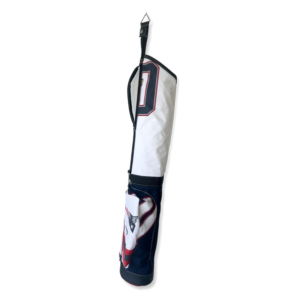 - 100% reclaimed jerseys and trimmed with genuine weathered red and navy leather and black webbing. (includes matching sail strap).